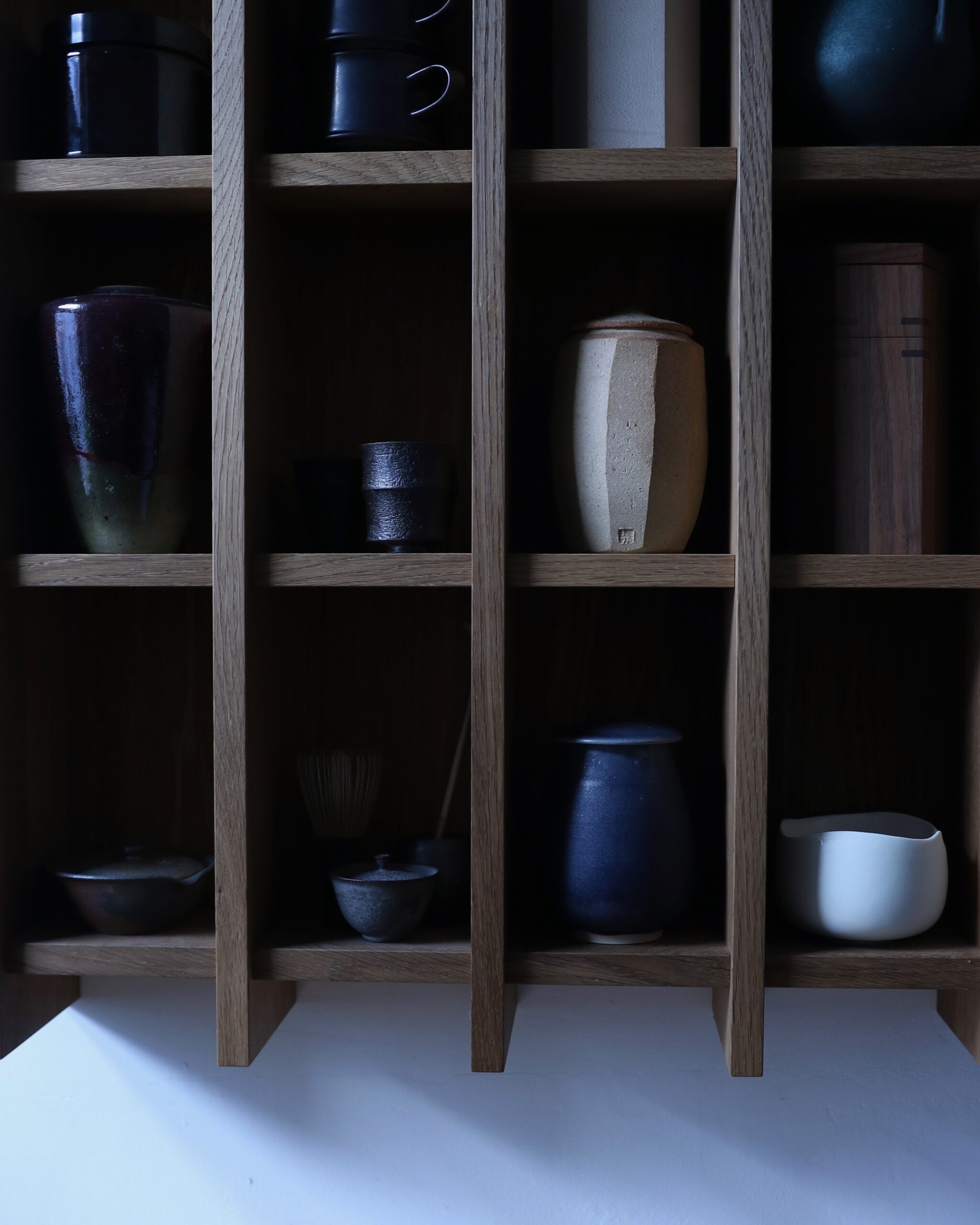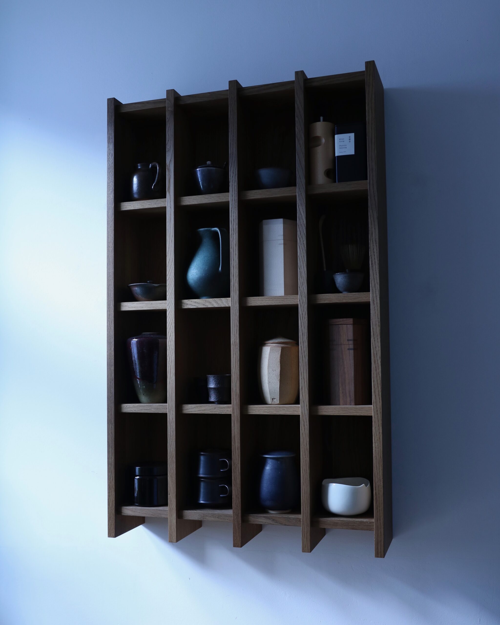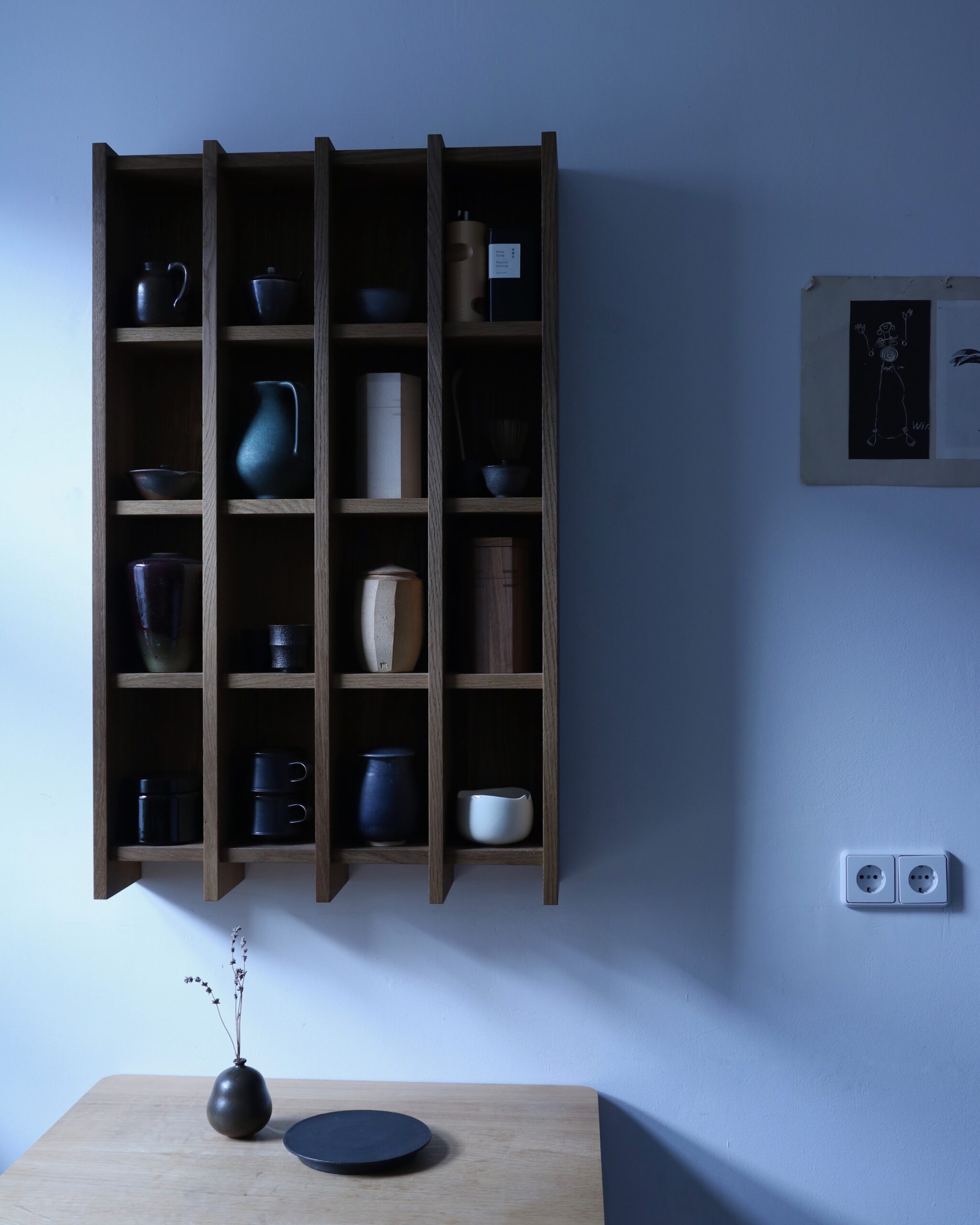 Dieses Regal aus geräucherter Eiche, überzeugt durch klare Formen und eine ruhige, reduzierte Gestaltung. Längliche Fächer schaffen sowohl visuelle Leichtigkeit als auch funktionale Ordnung. Die warme, dunkle Farbe des geräucherten Holzes betont die natürliche Maserung der Eiche und verleiht dem Möbel eine zeitlose, elegante Ausstrahlung.