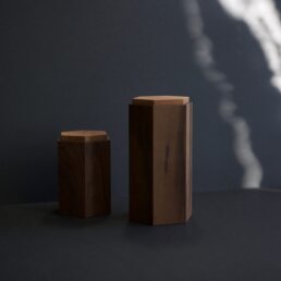 Diesen Teebehälter aus amerikanischem Nussbaumholz haben wir in sorgfältiger Handarbeit aus Produktionsresten von Schreinereien hergestellt. Kombiniert ist das dunkle Nussbaumholz mit Pflaumen- oder Birnbaumholz. Das Innere des Behälters ist unbehandelt. Inspiriert von traditioneller Handwerkskunst legen wir Wert auf jedes Detail.